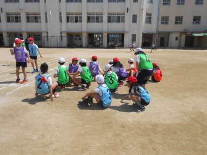 2回戦あったのですが、1回戦目の時、自分のチームの応援に一生懸命になりすぎて並んで待てていなかった5年生。