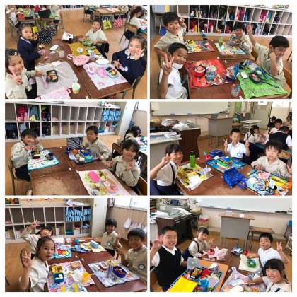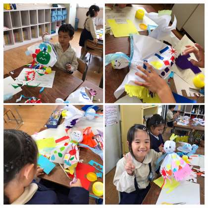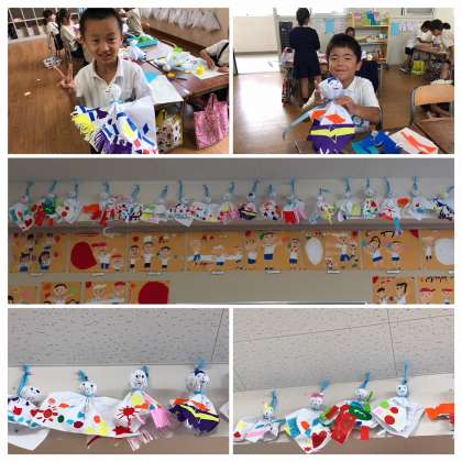 残念ながら延期になった全校遠足・・・でも来週こそは絶対に最高の全校遠足にするぞ!!という願いを込め、図画工作科の時間にてるてる坊主を作ることにしました!おしゃれで可愛いてるてる坊主が次々に完成!みんなの願い、天まで届け!!