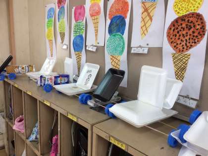 絵でどんなふうに作り替えたかや4コマ漫画ふうにどのように走らせたか描いている子もいました。