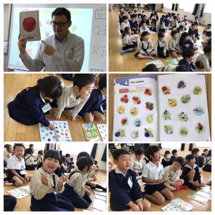 水曜日は英語活動の日!今日も元気いっぱい、たくさんのことを学びました。特に本日一番盛り上がったのは「おはじきゲーム」!ゲームを楽しみながら「I like〜.」の表現を学びました。