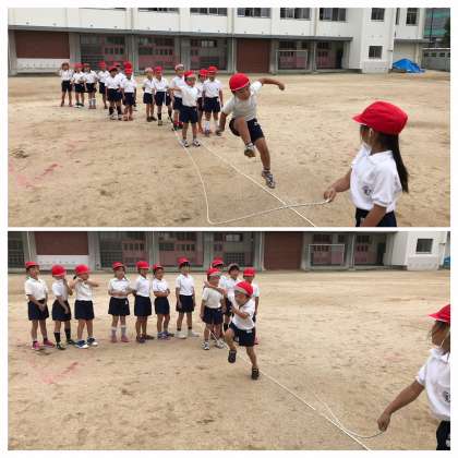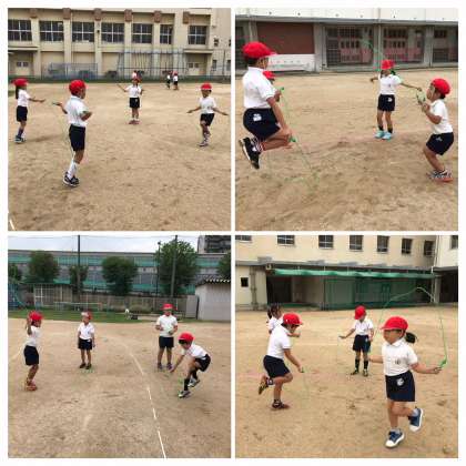 4時間目。体育科。今日は久しぶりに運動場へ!班の友だちと協力しながら練習し、どんどん縄跳びが上手になっていますよ♪そして、大縄跳びにもチャレンジ!回を重ねるごとに、縄の回転を見ながら跳べる子が増えてきました!