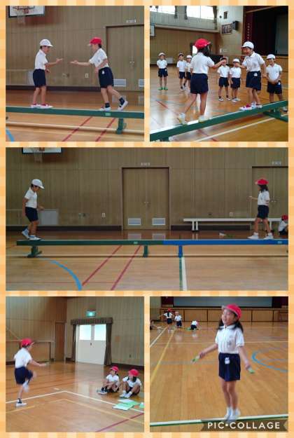 縄跳びの後は平均台を使って紅白対抗陣地取り。