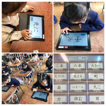 タブレットアンケートの後は、以前から取り組んでいる「漢字音読フラッシュ」。このフラッシュ、みんなが大好きな学習なんです。どの子も集中して取り組んでいました!