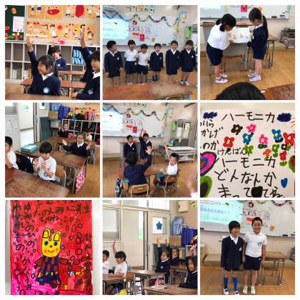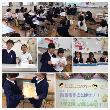 残念ながら延期になってしまった全校遠足・・・。みんなのガッカリを吹き飛ばすべく、5時間目の学級活動の時間にお楽しみ会を開催することにしました。それぞれが休み時間に友だちと相談して、即席で出し物の準備!各チーム、ポスターも作成し、みんなの期待が高まります。いざ、本番!ダジャレ披露、絵本の読み聞かせ、マジック、鍵盤ハーモニカの演奏、なぞなぞ等、バラエティーに富んだ出し物の数々に子ども達は大盛り上がり♪とっても楽しい1時間となりました。