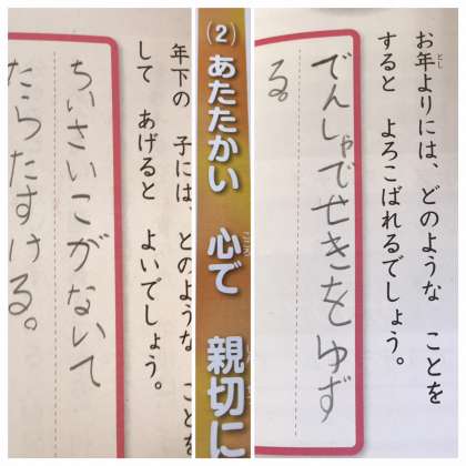 今日の道徳は「あたたかい心で親切に」。
