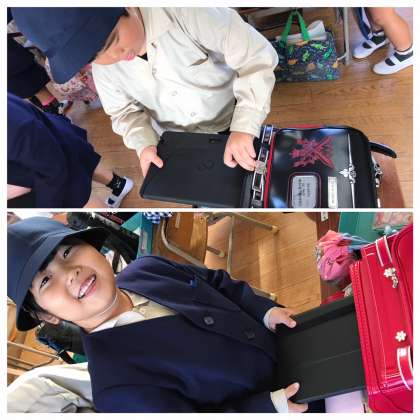 本日、タブレットを持ち帰っています。学校評価アンケートへご回答いただきますよう、よろしくお願いします。いつも使っているタブレットをお家に持って帰れると知って「お母さんにパスワード教えてあげないと」「ログインやってあげんねん」など、とっても嬉しそうな子ども達でした♪