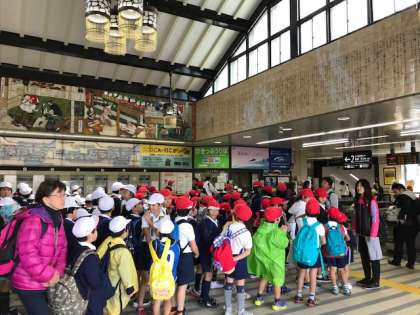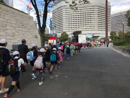 今から学校へ帰ります!オリエンテーリングでたくさん歩いた子ども達、学校までがんばれ!