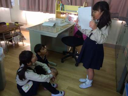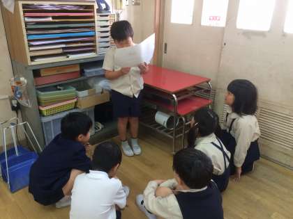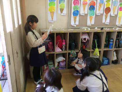 「 絵を見てお話を作りましょう」の学習で、1人1人お話を作りました。せっかく作ったので、友だちに聞いてもらいました。
