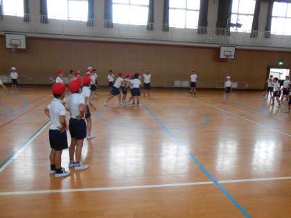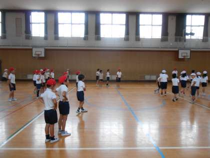 あいにくの雨で、プール開きができませんでした。そこで、体育館でドッジボールをしました。