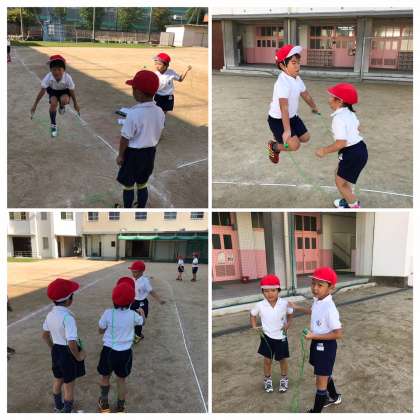 毎回恒例のグループ練習では、お互いに教え合ったり、数え合ったりと、チームワーク抜群です!あやとびや、こうさとびなど、技のバリエーションも増えてきました!