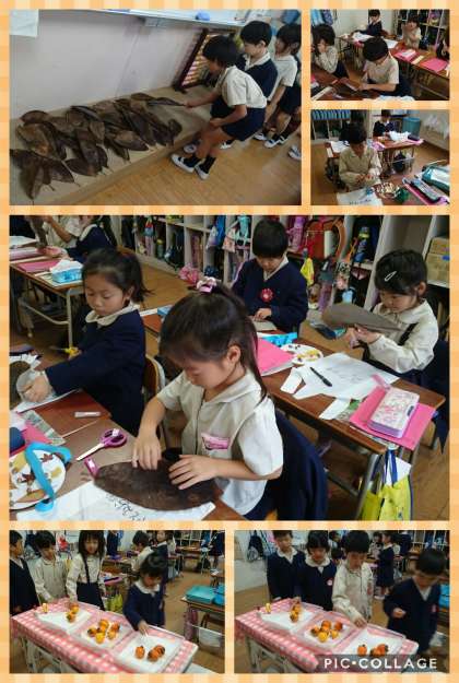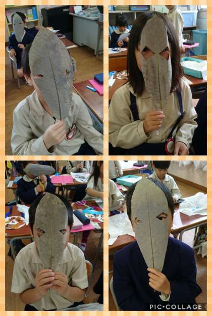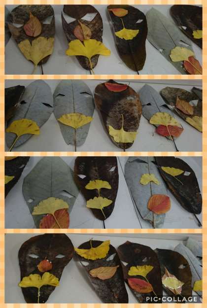 昨日の『秋の金メダル』に続き、今日は『朴葉のお面』作りに挑戦!!
