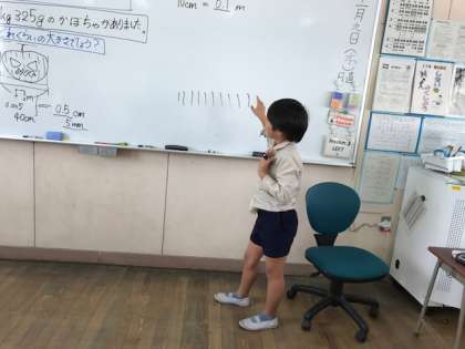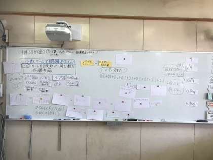 男の子が載っている方の写真はまさにそのワンシーン。小数の学習をしている我々ですが、友だちが「0.1は0.01が10こ分」のしくみを理解するのに苦労していた時、色々なものに置き換えて伝えようとしていました。