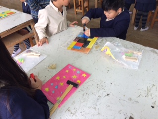 子どもたちが楽しみにしていた図工の時間がやってきました。図工室にくぎをうつトントンっという音が響きます。