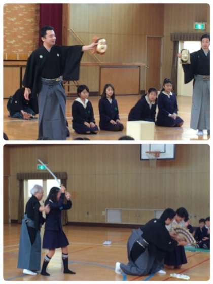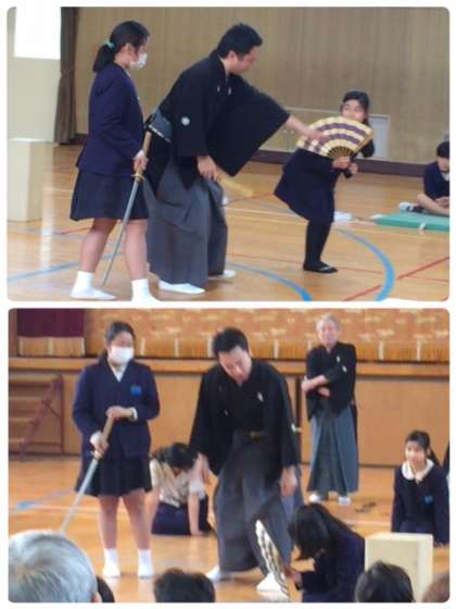 狂言体験もあり、普段の言葉との違いや仕草などに苦戦していました。