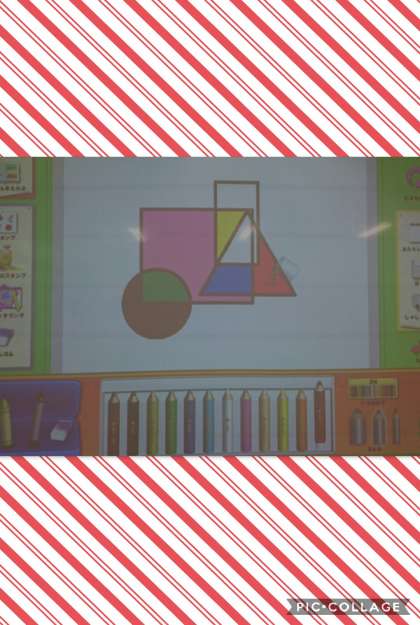 タブレットで丸、三角、四角等を描いた後、白い部分に色を流し込んでいきます。