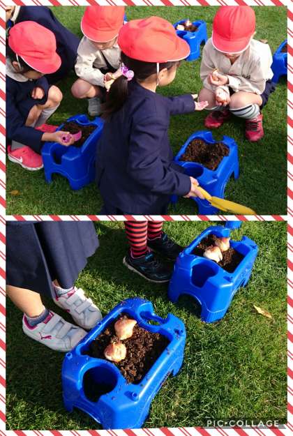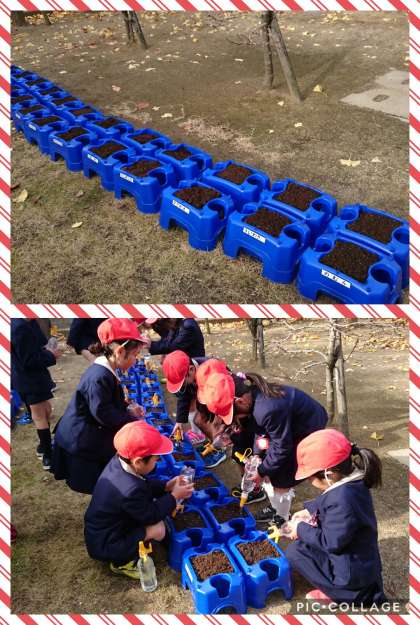 お休みの人の分も、みんなで協力し合って植えてくれました。