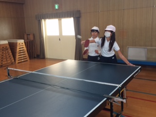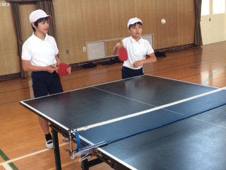 本日のクラブ活動でスポーツクラブは地域の方々に卓球台とネットを借りて卓球をしました。