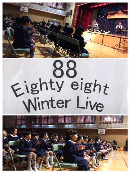 そして3時間目からは、88のライブ!!生演奏の迫力に釘付けの様子でした。エッグシェイカーやベルを演奏させてもらえるという幸運な子もいました♪手拍子をしたり、リズムに合わせて体を動かしたりと、ライブならではの一体感と臨場感を楽しみました!ライブ後は「めっちゃ楽しかったー!」「かっこよかった〜!」「はやくライブのこと日記に書きたいなぁ!」など、大興奮で感想を言い合っていましたよ♪