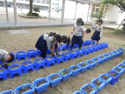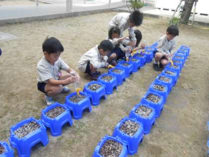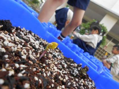 先週植えたアサガオの芽がちょっとずつ出てきました!