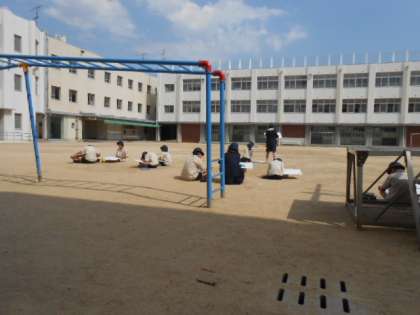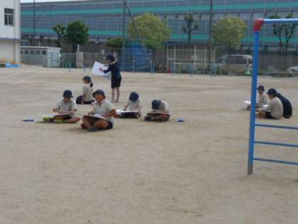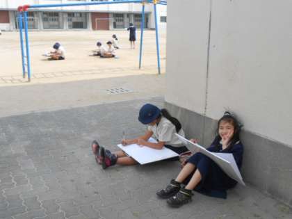 5・6時間目に5年生が外に出て梅香小学校の校舎をスケッチしていました。