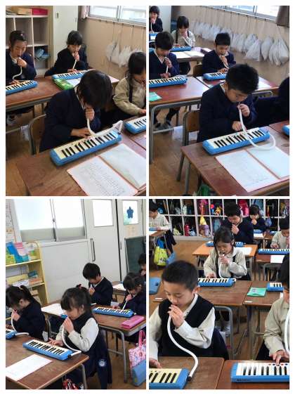 音楽科の学習では、鍵盤ハーモニカの練習をしました。冬休みにずいぶんと練習をしてきた子もいて、「もう楽譜を見なくても弾けるで!」という子も!すでに弾ける子も、まだ練習途中の子も、楽しみながら演奏をすることができました。音楽は楽しむことから始まりますものね♪