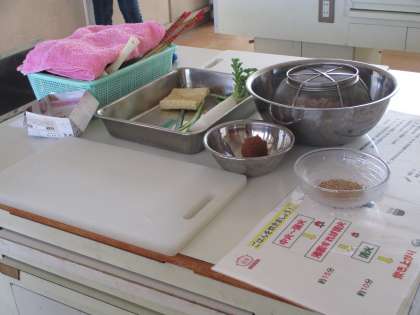 だしは、かつおぶしからとります。本格的です。「むだをなくしておいしくいただく」