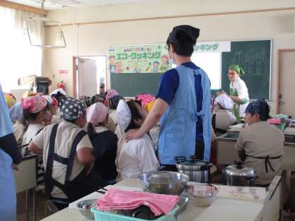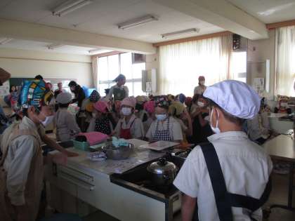 家庭科室で、5年生が大阪ガスエコクッキングの活動中なのです。