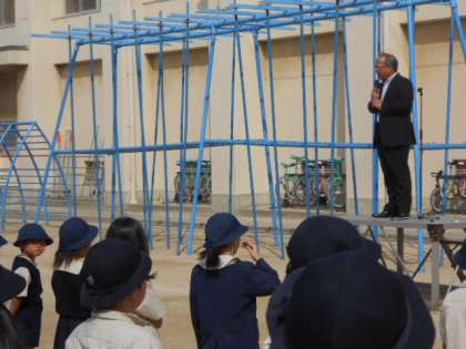 校長先生から5月の目標「登下校の時刻を守りましょう」とお話がありました。