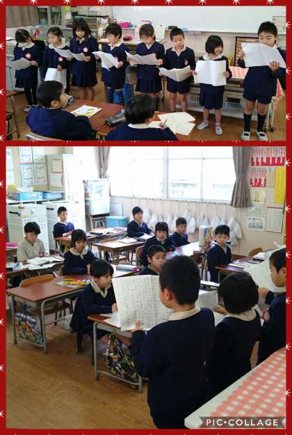 冬休みに作文を書いてきてくれたお友だちが、みんなの前で発表してくれました。