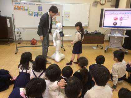 ペッパー君と一緒に遊びながらプログラミング学習をしました。