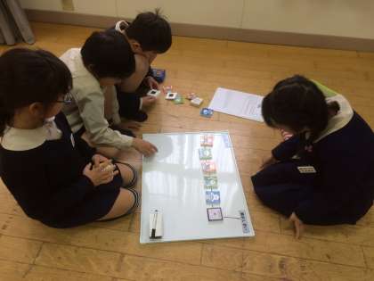 ペッパー君の動きや話すことをグループで考え、ボックスを使ってプログラミングしました。