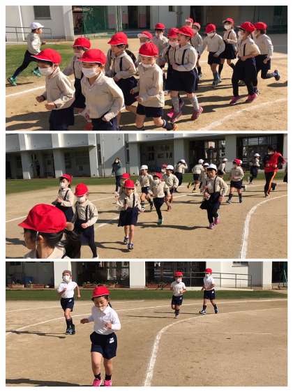 月曜日から始まった「かけ足週間」!今日のような寒い日でも、2時間目終了のチャイムが鳴るやいなや、上着を脱いで運動場に駆け出します。しっかりと準備体操をして、まずは歩いて体を慣らし、それから走ります。同じペースで走り続けるのは、なかなか難しいものですが、みんな少しずつ慣れてきた様子。終わった後は「暑いー!」「めっちゃ体、あったまったわー」「前より上手く走れた!」と、とっても清々しい表情の子どもたちでした♪
