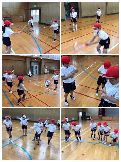 生活科「むかしあそび」の学習。羽子板とコマにチャレンジしました!羽子板とコマを子どもたちに見せると、「初めて見た!」「やったことないわ!」「保育園でちょっとだけやったことあるで!」と一気に興奮の渦!担任がコマを回して見せると「おおっ!!」「すごいー!!」と拍手をしてくれましたよ♪そして、子どもたちもいざ挑戦!これがなかなか難しい!なかなか羽を思うようにとばせない羽子板、ひもを巻く段階で四苦八苦のコマ・・・。あっという間にチャイムが鳴ってしまいました。また今度やろうね。