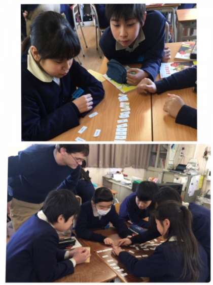 日本語文を見て、英単語を並べかえるのですが、かなり苦戦していました。