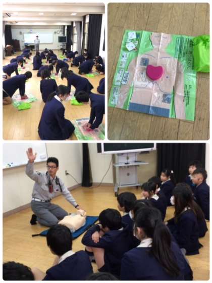 此花消防署の方に、子ども救命救急講習をしていただきました。