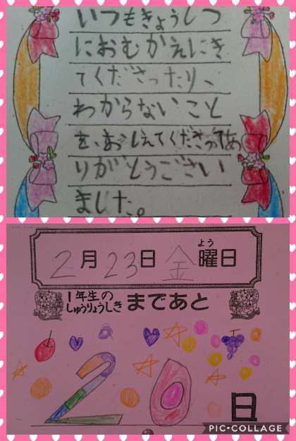 3月8日の『卒業を祝う会』で6年生のお姉さんお兄さんに届けるメッセージカードを仕上げました。