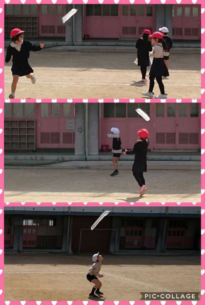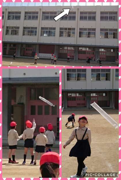 寒の戻りで少し寒さを感じる運動場で、最後の冬の遊びを楽しみました。