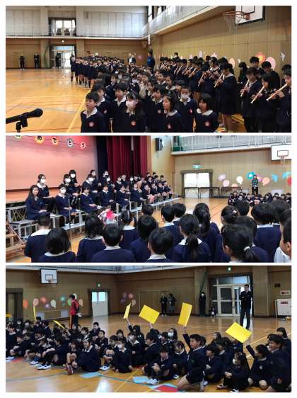 1時間目は「卒業を祝う会」でした。もうすぐ梅香小学校を飛び立つ6年生に在校生から歌や、呼びかけ、寄せ書きのプレゼントをしました。また、楽しいゲームもありました。今日の一言日記には「とっても楽しかった」「大きな声で呼びかけができてよかった」そして、「すごく寂しくて途中で泣きそうになった」という声も。1年生は6年生のお兄さん、お姉さんのことが本当に大好きです。