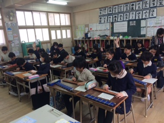 子どもたちは読み上げられるスピードに「はやいー。」と言いながらも正確にそろばんを弾くことが出来ていました。