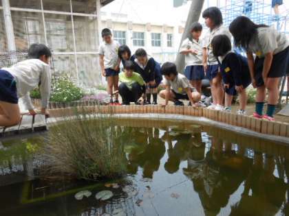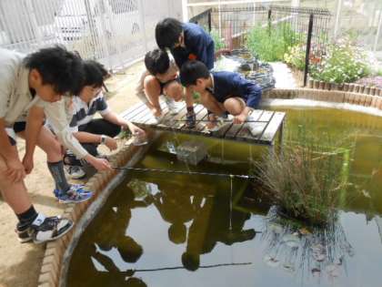 5年生はメダカ取り、6年生はザリガニ釣り!