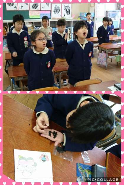 入学後にプレゼントする朝顔の種も、ぷっくりとして粒の大きな物を一生懸命選んで封筒に入れました。