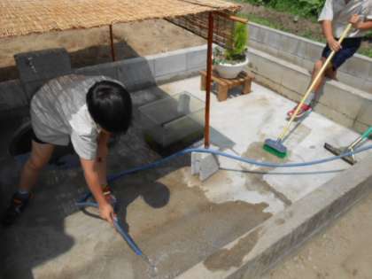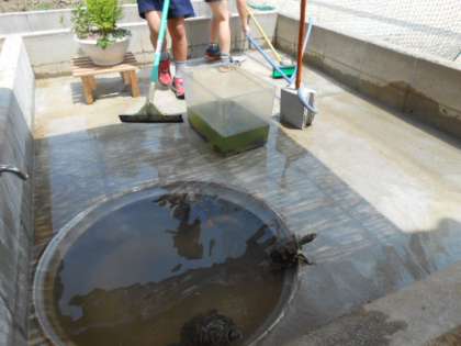 4年生の男子2名がカメ御殿を掃除してくれていました。