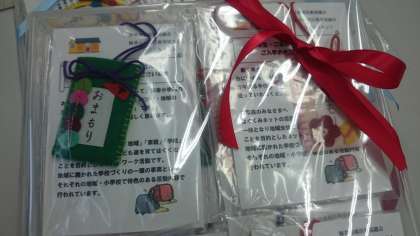 (1年生は地域の方手作りのおまもりをいただきました。)