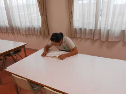 雨の日は、図書室で本を読んで過ごしましょう。 晴耕雨読。
