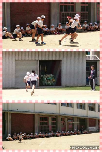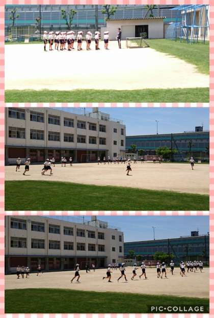 気持ちの良い青空の下、50メートル走の練習をしました。