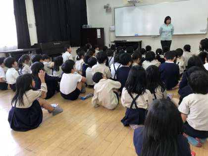 今日は顔合わせも兼ねて、班ごとに自己紹介をしました。4年生の班長、副班長さんがしっかりリードして、うまく活動ができました。来週の本番も仲良くできるといいですね。