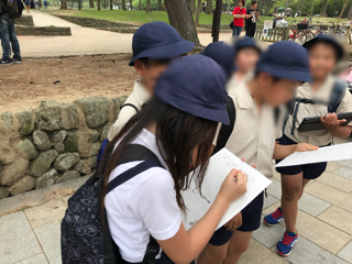 雨が降ることもなくインタビューと東大寺見学を終えることができ、子どもたちが一生懸命英語を話す姿にとても感動しました!!