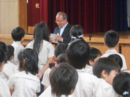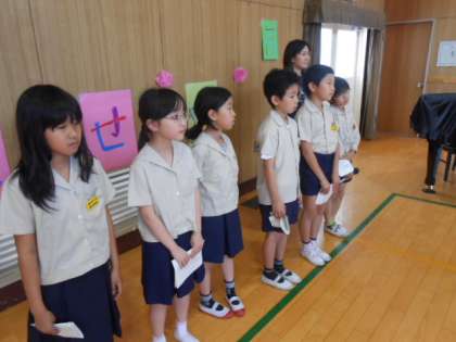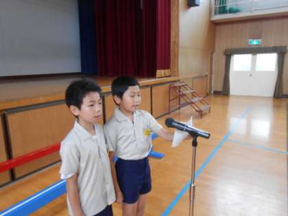 児童会の代表が「今日は梅香ランド楽しめましたか?」と聞くと