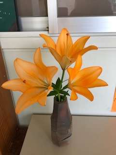 学校の周りにユリの花がたくさん咲いています。舞洲ゆり園からいただいた球根から育っているそうです。