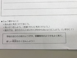 小学校近辺の町の様子や、図書館の様子とそこで働く人たちの願いなどを見聞きしてきたいと思います。